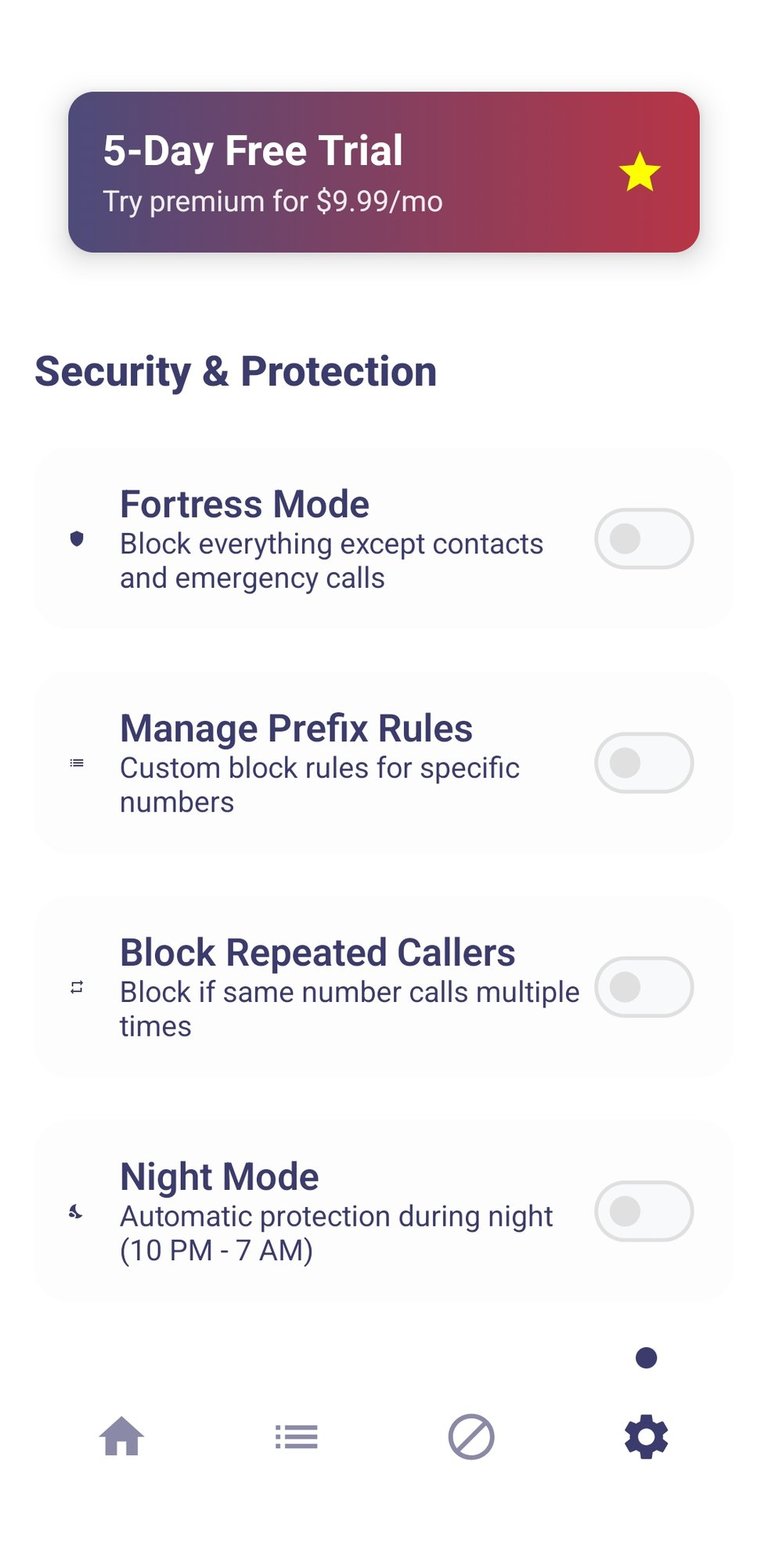 With a single tap, block particular prefixes like "979" or "+44." Prevent international robocalls and neighbor spoofing before they start.