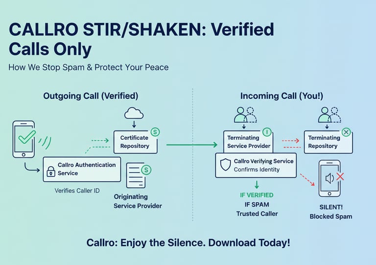 Callro spam call filter also implements the same highly advanced caller verification technology as phone carriers do, STIR/SHAKEN, to confirm the identity of each incoming call and prevent spam calls from getting to you.