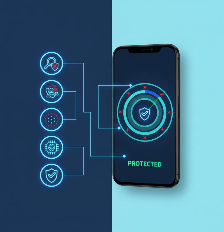 Step 2 Filter: Verified calls ring through. Unverified or suspicious calls are silently blocked.